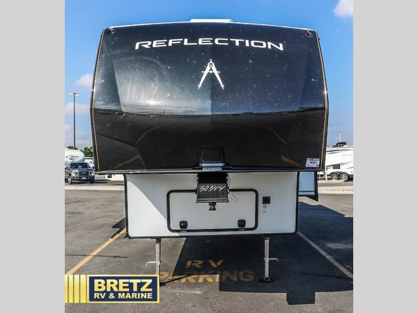 With any Reflection fifth wheel by Grand Design, you will have a solar panel for off-grid camping and a 60 amp charge controller and inverter prep, a Universal All-In-One docking station, unobstructed pass-through storage, and Goodyear Endurance tires. Each is constructed of gel coat exterior sidewalls, residential 5" truss rafters, walk-on roof decking, a fiberglass and radiant foil roof and front cap insulation plus laminated aluminum framed side walls, roof and end walls in slide rooms. Head inside to enjoy residential hardwood cabinet doors, premium Congoleum flooring, a spacious shower with a glass door, and many more comforts!