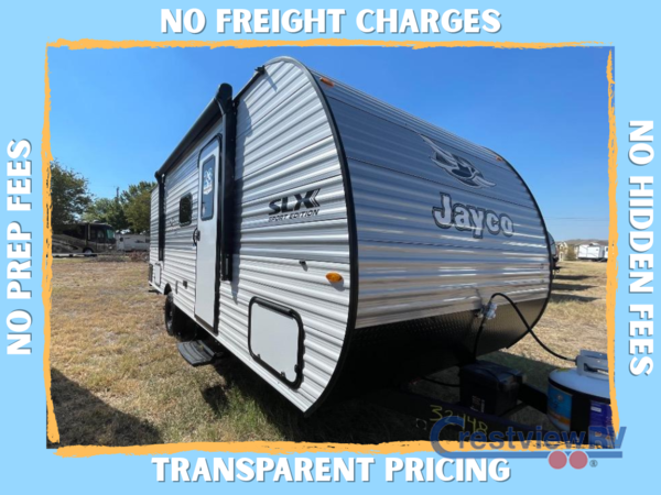 The Jayco Jay Flight SLX travel trailer is quite easy to own because it is lightweight for an easier towing experience. Built on a fully integrated A-frame with galvanized-steel, impact-resistant wheel wells, the Jay Flight SLX has quality at its very foundation. That quality continues on to the electric self-adjusting brakes, easy-lube hubs, Magnum Truss roof system, and LP quick connect. Some of what the mandatory Customer Value Package includes is backup camera prep, Keyed-Alike entry and baggage doors, and an on-demand tankless water heater.