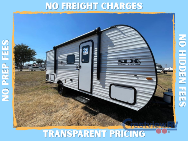 The Jayco Jay Flight SLX travel trailer is quite easy to own because it is lightweight for an easier towing experience. Built on a fully integrated A-frame with galvanized-steel, impact-resistant wheel wells, the Jay Flight SLX has quality at its very foundation. That quality continues on to the electric self-adjusting brakes, easy-lube hubs, Magnum Truss roof system, and LP quick connect. Some of what the mandatory Customer Value Package includes is backup camera prep, Keyed-Alike entry and baggage doors, and an on-demand tankless water heater