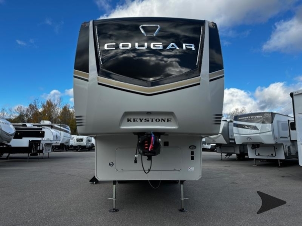 Spend more time having fun and less time worrying about your RV with the Keystone Cougar fifth wheel! These units have all that you will need for excellent vacations. The interior comes with 5/8" one-piece DynaSpan® flooring, tall slide outs for added comfort and head room, night roller shades throughout, and residential, shaker style hardwood cabinet doors and drawers. You will also enjoy Lock-It decorative crown molding, a 5,500 BTU electric fireplace with thermostat control and remote, and a Max Air exhaust fan with rain sensor. The exterior is also fully outfitted with a convenience center, friction-hinge entry door, electric four-point auto leveling system, and slam-latch baggage doors. Each model is available with the optional Hero Edition. By choosing this edition, you can help support our nation's heros and their families by contributing to the Wounded Warrior Project. This optional package features an industry exclusive full-body paint matte finish, frameless windows, a glass entry door, blackout rims, and green LED exterior accent lighting; see dealer for more details!