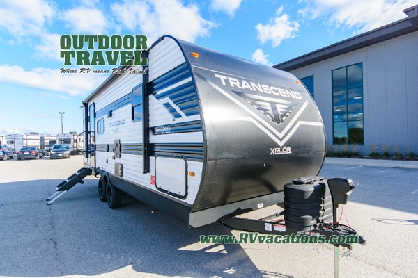 The customer-focused, quality-built Transcend Xplor travel trailers by Grand Design are your ticket to fun and adventure. You will appreciate the power tongue jack when it comes time to set up, as well as the all-in-one utility center and the detachable power cord with an LED light. These models include many outlets throughout, USB ports to charge your gadgets, and a JBL exterior speaker to listen to your favorite tunes. The interior of the Transcend Xplor will have you feeling right at home with upgraded residential furniture, residential countertops, residential cabinet doors, and the list goes on!