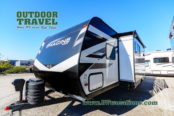 This Imagine XLS travel trailer has theater seating and a booth dinette that you can use any time you need a little break from the outdoors. If you want to come in and grab a coffee, put together a puzzle, or work on your itinerary for the week, just put up your feet and relax. You could even switch on the LED HDTV if you want a little entertainment. The front queen-size bed has a privacy curtain that you can draw to create a semi-private bedroom, and in the back of the trailer you will find the rest of your amenities, like the kitchen and the bathroom. The large slide makes it easy to enjoy spending your time indoors, but if you do want to get back outside, you can sit underneath the 18' electric awning for some shade.