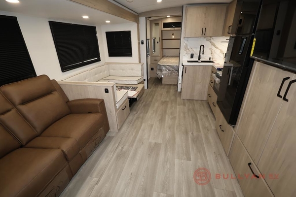 Where will you go with this Imagine travel trailer? The possibilities are endless! You can take your family on an exciting excursion because this trailer has enough sleeping space for everyone with a 60" x 80" queen bed in the private bedroom, a U-shaped dinette and tri-fold sofa in the main living area, and there is a set of 47" x 76" bunk beds with privacy curtains in the rear corner. You can come and go as you please with two entry doors, and the outdoor griddle and refrigerator will be fun to use when the weather is nice. The flip-up countertop extension will make it easier to prepare delicious home cooked meals and the shoe storage area helps to keep things neat and tidy.