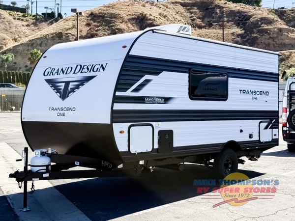 With any Transcend One travel trailer by Grand Design, you will enjoy lightweight towing thanks to their single-axle. There are many interior comforts to make camping easier than ever, such as recessed lighting, residential countertops, and a 6' 6" interior height. Each model is constructed with a heated and enclosed underbelly with suspended tanks, a moisture barrier floor enclosure, and Thermofoil over the roof and front cap for added protection. And a JBL sound system will let you listen to tunes as you visit under the power awning with a Fusion light!