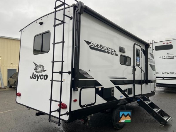 With any Jay Feather Air travel trailer by Jayco, you will enjoy lightweight towing and a variety of features to make each camping trip count! The Climate Shield insulation system helps extend your camping season by keeping you comfortable even in extreme weather conditions, and the Rock Solid stabilizer system means set up will be a breeze. An 18" rear roof ladder lets you easily clean the top of your Magnum Truss roof, and the 2" receiver will be perfect for your bike rack. The Overland 1 Solar Package with a 200W solar panel and 30-amp controller will provide off-grid capabilities, or you can can choose the optional Overland 2 Solar Package with two panels instead! Each Jay Feather Air includes residential-style seamless countertops inside, along with stainless steel sinks, decorative backsplash, and decorative roller shades with a reflective barrier to help keep the sun's rays out.