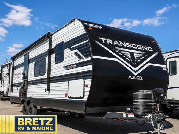 The customer-focused, quality-built Transcend Xplor travel trailers by Grand Design are your ticket to fun and adventure. You will appreciate the power tongue jack when it comes time to set up, as well as the all-in-one utility center and the detachable power cord with an LED light. These models include many outlets throughout, USB ports to charge your gadgets, and a JBL exterior speaker to listen to your favorite tunes. The interior of the Transcend Xplor will have you feeling right at home with upgraded residential furniture, residential countertops, residential cabinet doors, and the list goes on!