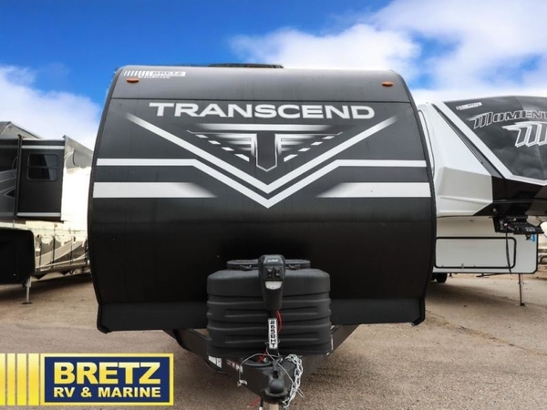 With any Transcend travel trailer by Grand Design, you will enjoy upscale appointments and convenient amenities to make each camping experience one to remember! The Quad Seal technology, residential insulated walls, plus heated and enclosed underbelly with suspended tanks make these units solid and durable. There is a black automotive glass door outside, along with a Safe-T-Rail assist on the main entry door, backup camera prep, and a universal docking station. JBL interior and exterior speakers plus a JBL head unit will let you listen to your favorite tunes as you visit under the power awning with LED strip lights. Inside, you'll enjoy multiple outlets to keep your gadgets charged, thermoformed and seamless countertops, and a 6' 6" interior height so you won't feel closed in. The Solar Prep Package will allow you to enjoy off-grid capabilities with a 200W solar panel, which is wired for up to 600W, a 30 AMP Bluetooth solar controller, a 2000W inverter prep, and more!