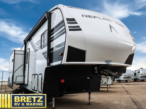 Each Reflection 100 Series fifth wheel by Grand Design is affordable and packed with luxury for unforgettable camping memories! The MorRyde CRE3000 suspension system and Goodyear Endurance tires will provide smooth towing from home to campground. And the solar package with a 180W solar panel, 60 Amp charge controller and 12V refrigerator will allow you to camp for longer periods of time and in more locations! A heated and enclosed underbelly with circulating heat is included in the Arctic 4-Seasons Protection Package, along with a double insulated roof and front cap, and thermofoil insulation under the holding tanks so you can camp all year long if you choose. You will appreciate having an on-demand water heater for hot showers after exploring, and the universal all-in-one docking station will let you monitor your RVs tanks levels and functions with ease. These models also include many luxurious interior features, such as premium Congoleum flooring, pleated shades, residential cabinetry, and matte black fixtures and hardware. Don't let the Reflection 100 Series fifth wheels pass you by!