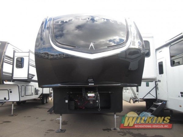 Any Grand Design Influence fifth wheel features five-sided aluminum cage construction with a walk-on roof and a fully enclosed underbelly with heated tanks and storage for all weather camping. For peace of mind, the MORryde CRE3000 Suspension system will provide safe and smooth towing, and the 101" widebody construction offers all the room you need and that is before multiple slides are fully engaged. You will appreciate the Keyed-Alike locks, slam-latch baggage doors with magnetic door catches, exterior security light, and SolidStep entry steps. On the inside, Congoleum flooring, premium roller shades for privacy, a hallway handrail for safety, and nightstands with USB ports to keep all of your electronics fully charged. You will also love the On Demand tankless water heater when showering, plus the added heat and ambiance from an electric fireplace, and so much more!