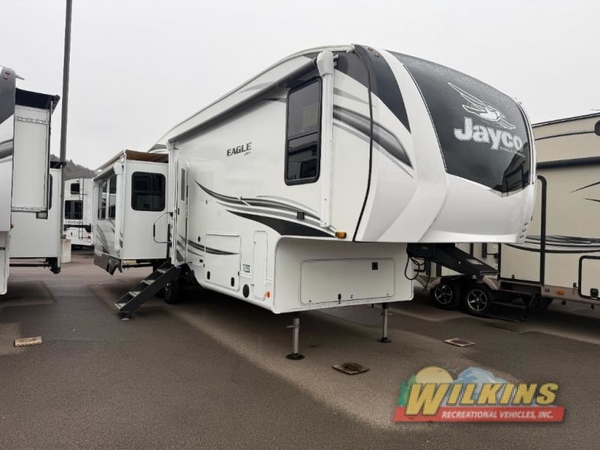 Start having generations of family fun with any one of these Jayco Eagle travel trailers and fifth wheels! Jayco has taken the extra steps to build high quality products that have the most advanced construction techniques with the StrongholdVBL vacuum-bond lamination that is the lightest yet strongest construction available in the RV industry. The Magnum Truss Roof System is 50% stronger than other roofs in the industry and are built to outlast everything but your memories with top-quality materials and innovative manufacturing techniques. There are three mandatory packages in addition to the long list of standard features to make each and every trip as enjoyable as it can be. A few of these features include a patent-pending Drinking Water System, an LED fireplace with 5,000 BTU electric space heater, MORryde® StepAbove entrance steps with blue LED light, and an observation camera prep on the rear and sides. With Goodyear® Endurance® tires made in the U.S.A, Dexter® axles with Nev-R-Adjust® brakes and E-Z Lube® hubs, and a MORryde® CRE--3000 rubberized suspension, you will experience a smooth ride. Don't wait any longer, come choose your favorite one today!