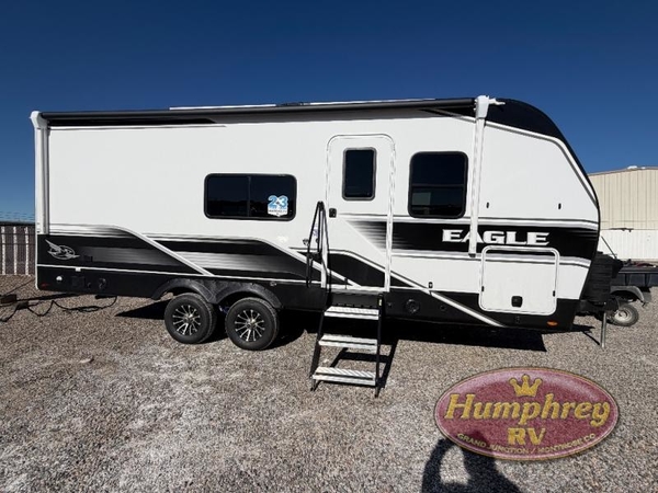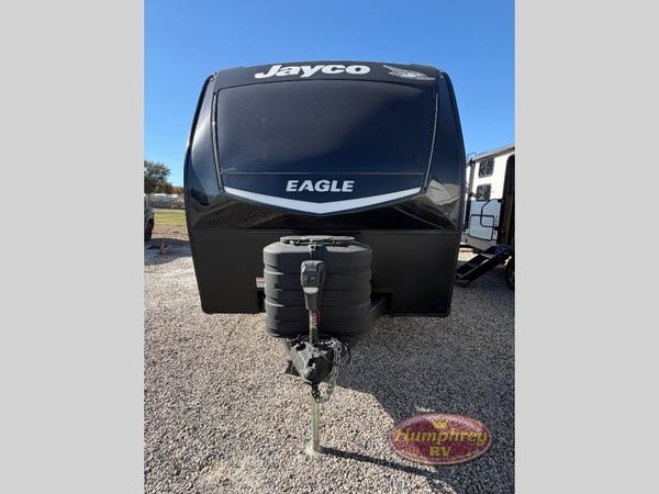 With any Eagle HT fifth wheel or travel trailer by Jayco you will enjoy a smooth drive thanks to the 4 Star Handling Package and MORryde CRE-3000 rubberized suspension. The Customer Value Package includes amenities that are sure to make camping easier than ever, like the 60K on-demand water heater, Keyed-Alike lock system, 15,000 BTU "Whisper Quiet" A/C, and more. Handcrafted door/drawer fronts will make your space feel more like home, along with residential vinyl flooring throughout, GE appliances, and blackout roller shades with reflective side throughout to keep the sun out when you want to sleep in. Each model also includes a NuVo H2O water treatment system with filters included, interior and exterior "Blue Sync" audio connect with MB Quart Sound for your TV and phone, and 100% no floor vents for added comfort and convenience!