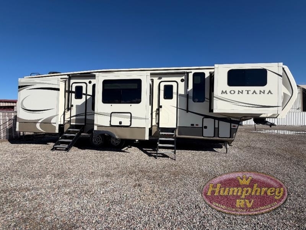 When packing for your next trip in a Keystone Montana luxury fifth wheel you will appreciate the enormous drop frame pass-through storage compartment, MORyde "Step Above" entry steps with strut, and flush mounted LED interior lights to name a few features. Inside you will find an iRelax high density mattress for a good night's sleep, plus a Furrion RV Chef collection oven with auto-ignite and a convection/microwave oven for making your favorite meals. It's time to find the luxury fifth wheel you can enjoy for years to come, choose a Montana by Keystone today!