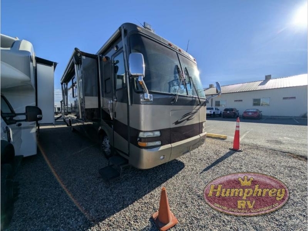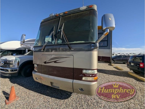Quad Slide, Rear Queen Bed Slide w/Nightstands, Wardrobe w/Washer/Dryer Opt., TV, Dresser, Shower, Vanity w/Overhead Cab., Seperate Stool Room w/Vanity, Refrigerator, Pantry/Hutch, Double Kitchen Sink, 2 Burner Range w/Microwave, Dinette w/Chairs, 2 Sofas, TV Over Cab and More.