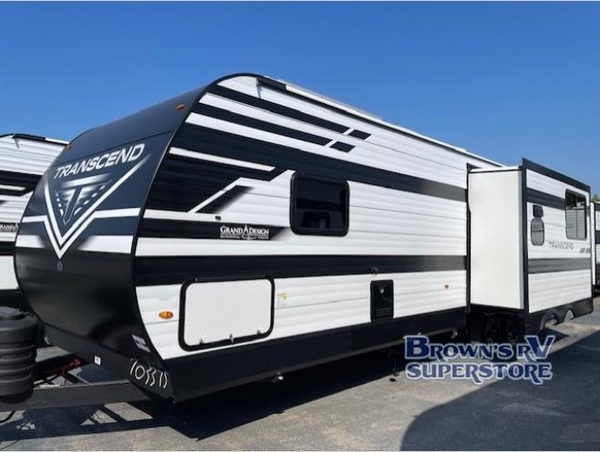 With any Transcend travel trailer by Grand Design, you will enjoy upscale appointments and convenient amenities to make each camping experience one to remember! The Quad Seal technology, residential insulated walls, plus heated and enclosed underbelly with suspended tanks make these units solid and durable. There is a black automotive glass door outside, along with a Safe-T-Rail assist on the main entry door, backup camera prep, and a universal docking station. JBL interior and exterior speakers plus a JBL head unit will let you listen to your favorite tunes as you visit under the power awning with LED strip lights. Inside, you'll enjoy multiple outlets to keep your gadgets charged, thermoformed and seamless countertops, and a 6' 6" interior height so you won't feel closed in. The Solar Prep Package will allow you to enjoy off-grid capabilities with a 200W solar panel, which is wired for up to 600W, a 30 AMP Bluetooth solar controller, a 2000W inverter prep, and more!