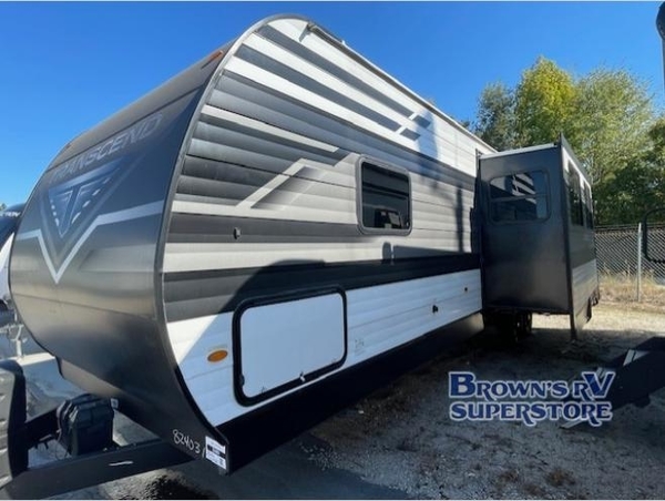 The customer-focused, quality-built Transcend Xplor travel trailers by Grand Design are your ticket to fun and adventure. The upgraded Strongwall metal exterior will hold up through the years, and the heated and enclosed underbelly means you can camp in all seasons. You will appreciate the power tongue jack when it comes time to set up, as well as the all-in-one utility center and the detachable power cord with an LED light. These models include many outlets throughout, USB ports to charge your gadgets, and an AM/FM/Bluetooth stereo with exterior speakers to keep you entertained. The interior of the Transcend Xplor will have you feeling right at home with upgraded residential furniture, a large, solid bedroom door, and residential countertops, and the list goes on!
