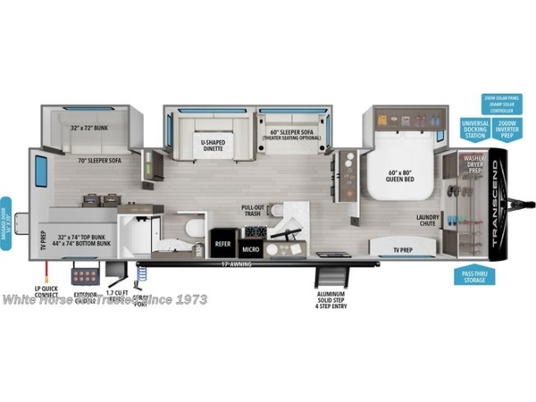Four-Season Ready: Enclosed underbelly, solar package with 200W panel, 30A controller, and 2000W inverter prep.
