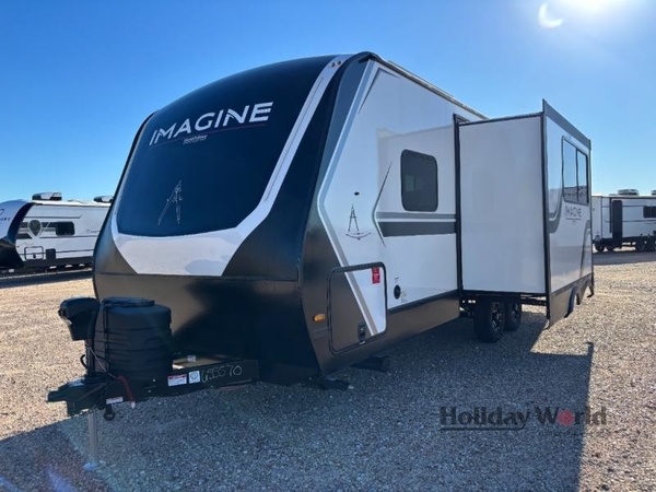 Just imagine leaving the world behind and secluding yourself away with your favorite people in your Grand Design Imagine travel trailer! The Imagine has been designed to enjoy extended season camping and includes a high-capacity furnace, a heated and enclosed underbelly with suspended tanks, a designated heat duct to the subfloor, and a high-density roof insulation with attic vent. You'll have maximum head room on the interior with 81" radius ceilings, and large panoramic windows to let in natural lighting. The exclusive drop-frame pass-through storage compartment is going to allow you to bring along lots of equipment, and the universal docking station is an all-in-one location for utilities and hook-ups. You'll also have oversized tank capacities so that you can fill and empty your tanks less often.
