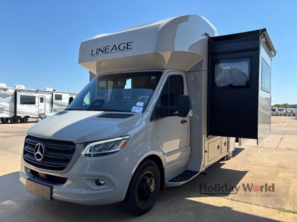 Grand Design's first motorized coach, the Lineage Series M is coming to you with luxurious features at a great value. This Class C diesel motorhome sits on a Mercedes-Benz sprinter chassis for quality and performance you can trust. True to Grand Design's foundation, the Lineage includes interior comforts, durable construction, innovative features, and attention to detail. The Series M Package includes natural teak wood grain, a Lineage Suspension Package, and more. There is also a Blackout Package with black aluminum wheels, a Chromeout Package with chrome aluminum wheels, plus additional packages to enhance your travel experience!