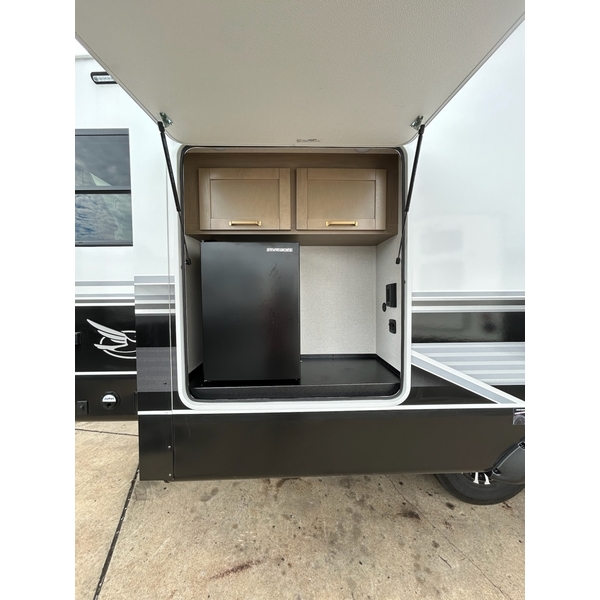 The Eagle HT isnt just about beautyits built for real-world adventure. JayCommand technology lets you control lights, awnings, and tank levels from your phone. A JayPort® outdoor kitchen hookup with hot/cold water means you can grill with a view of the canyon, and flush flooring throughout means no stubbing your toe in the dark.