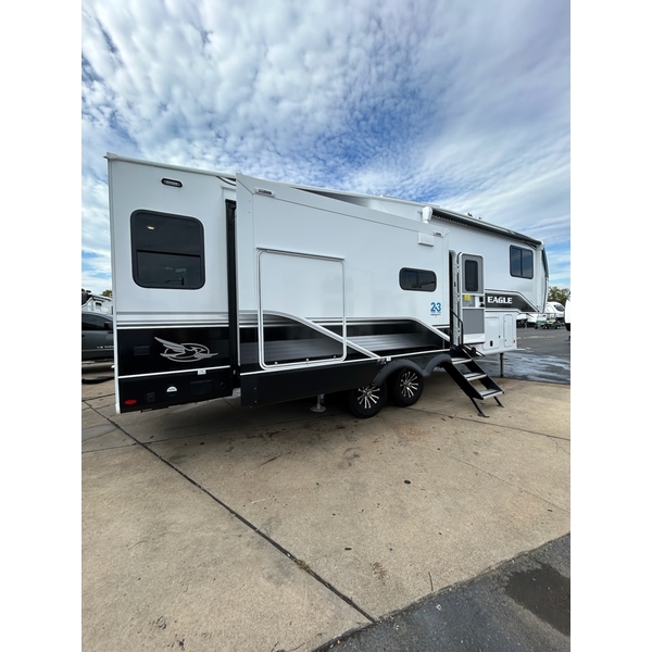 Step into the world of Fifth Wheel RVing with the Eagle HT Fifth Wheel, where high-end luxury meets effortless towability. Designed for explorers who want all of the comforts of home without needing a heavy-duty tow vehicle, this Fifth Wheel delivers spacious interiors, cutting-edge tech, and residential-style finishesall wrapped in a sleek, road-ready design.