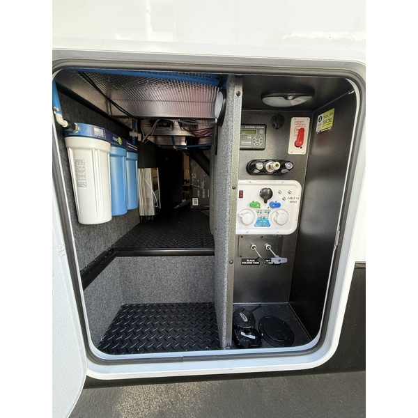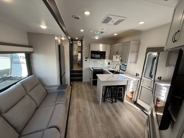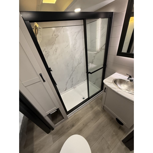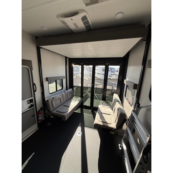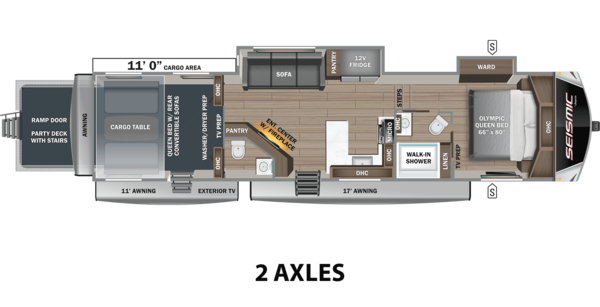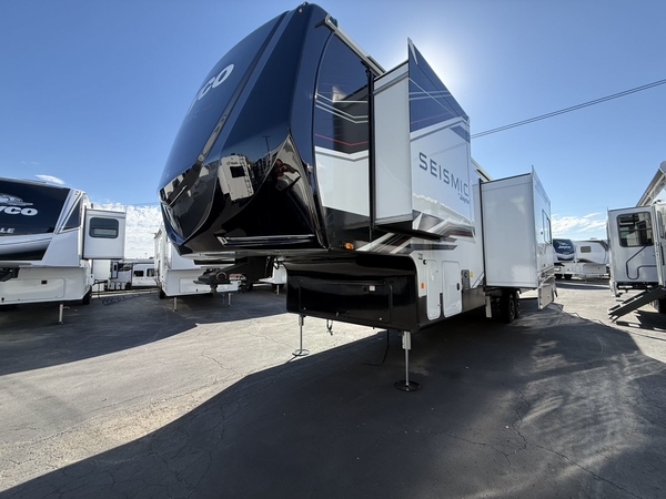 Built on a 102 in. wide structural steel I-beam frame, the Seismic features Stronghold VBL aluminum-framed walls, a Magnum Truss Roof System, and an Alpha roof membrane with a limited lifetime warranty. Reaching your destination is effortless with the 5-Star Handling Package, which includes Dexter® Axles with ABS and Tow Assist, 17.5 in., 16-ply "H" rated Cooper tires, and the MorRyde CRE 3000 Suspension System for a smooth, controlled ride.