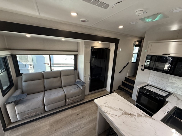 The 2026 Jayco Seismic Toy Hauler is built for adventure, offering rugged durability and high-end comfort for all-season camping. With Climate Shield zero-degree tested weather protection, a 35,000 BTU furnace, and double-layer fiberglass batt insulation, youll stay comfortable in any climate. The fully enclosed and heated underbelly ensures peace of mind even in freezing conditions.