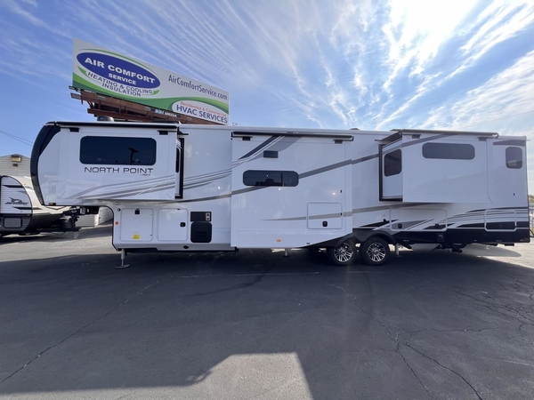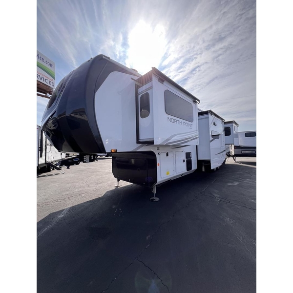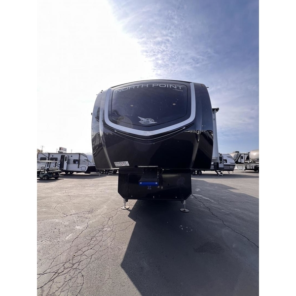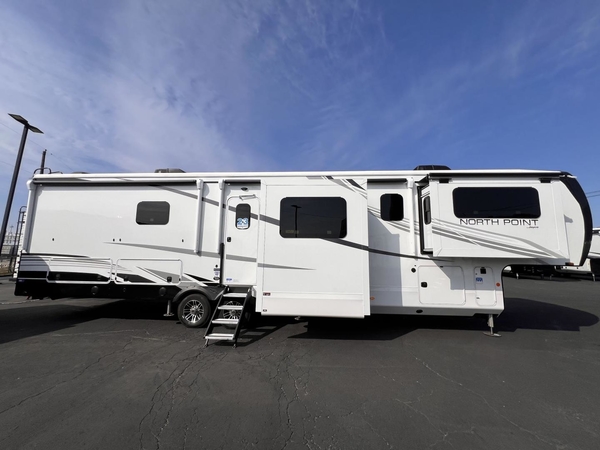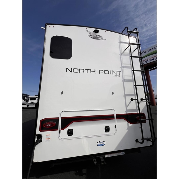 Luxury and comfort combine in the Jayco North Point Luxury Fifth Wheel for the most enjoyable camping experience youll ever have. From the minute you leave your home, youll notice the difference with North Points industry-exclusive 5-star handling package. The handling package includes the MORryde® Pin Box with a combination rubber isolator and chucking reduction system to help with the front-to-back and side-to-side vibration. The MORryde® Rubberized Axle Suspension System provides up to 3 of up/down travel, which is essential to isolating and eliminating road shock. Most competitors systems allow for less than 2 of movement. All Jayco Fifth Wheels are built using 7,000-lb. or 7,400-lb. Dexter axles with Nev-R-Adjust® brakes. This braking system eliminates the need for repeated, time-consuming manual adjustments and can greatly increase stopping distance. Dexter® Heavy-Duty Shackles with Wet Bolt Fasteners and Bronze Bushings help resist the wear and tear of towing. Jayco also upgrades to heavy-duty 4,000-lb. springs instead of the standard 3,500-lb. springs. The North Point tires are 17.5 H rated 16 ply Uniroyal tires with 4,805-lb. weight rating.