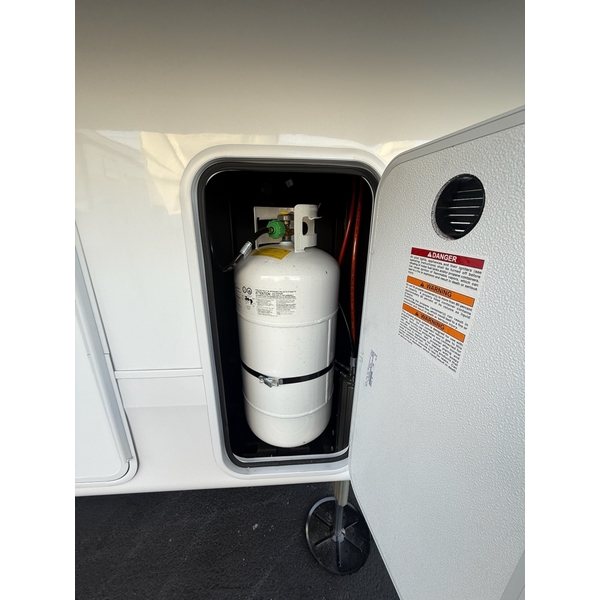 Climate control is made effortless with Jaycos exclusive HELIX Cooling System, while three 40-lb. propane tanks give you extended freedom for off-grid stays. In the bathroom, a residential walk-in shower with a teak seat, premium fixtures and spa-inspired details turn routine into indulgence.