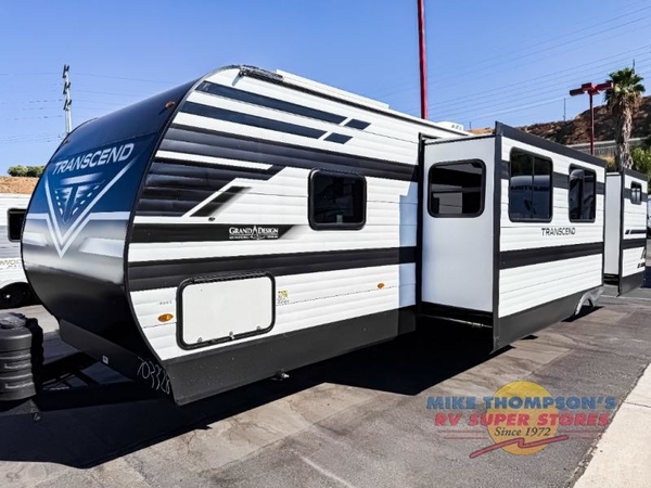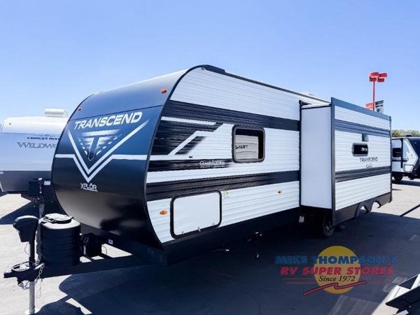The customer-focused, quality-built Transcend Xplor travel trailers by Grand Design are your ticket to fun and adventure. You will appreciate the power tongue jack when it comes time to set up, as well as the all-in-one utility center and the detachable power cord with an LED light. These models include many outlets throughout, USB ports to charge your gadgets, and a JBL exterior speaker to listen to your favorite tunes. The interior of the Transcend Xplor will have you feeling right at home with upgraded residential furniture, residential countertops, residential cabinet doors, and the list goes on!
