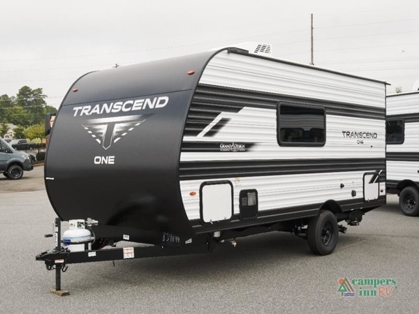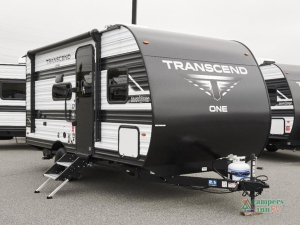 With any Transcend One travel trailer by Grand Design, you will enjoy lightweight towing thanks to their single-axle. There are many interior comforts to make camping easier than ever, such as recessed lighting, residential countertops, and a 6' 6" interior height. Each model is constructed with a heated and enclosed underbelly with suspended tanks, a moisture barrier floor enclosure, and Thermofoil over the roof and front cap for added protection. And a JBL sound system will let you listen to tunes as you visit under the power awning with a Fusion light!
