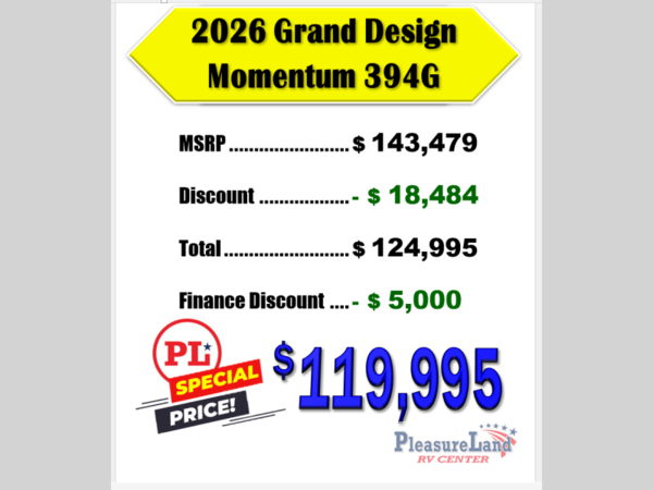Grand Design Momentum G-Class toy hauler 394G highlights: