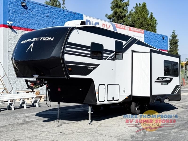 Feel right at home in this Reflection 150 Series with a private bedroom that includes a walk-around queen bed with storage on each side, windows, and a space savings sliding door. The full bathroom offers a walk-in shower, storage for your linens and a sliding door for easy access. When you get hungry, the cook will have an L-shaped kitchen area to make meals, plus full amenities including a 30" microwave, a flip-up counter extension, a pantry for your dry goods and a 16 cu. ft. refrigerator to store lots of food and cold beverages. You can dine at the rear U-shaped dinette lounge and enjoy the view out of all the windows or outside under the 18' electric awning. And the 78" theatre seating will be a nice place to relax and watch the 40" LED HDTV.