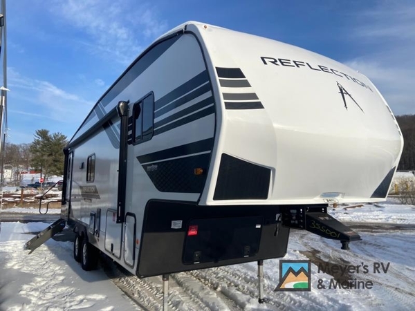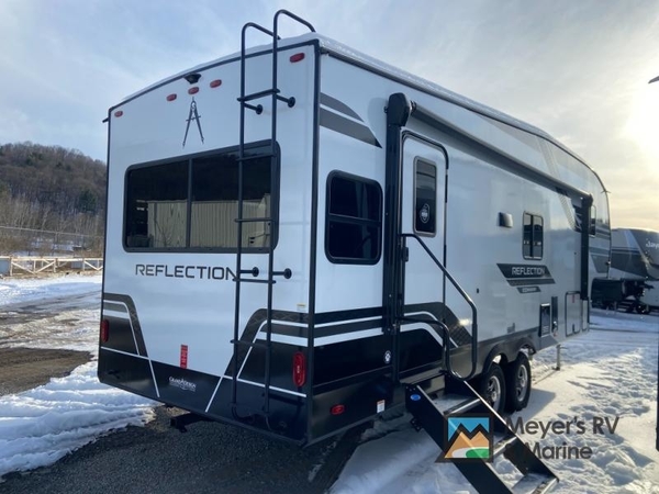 Each Reflection 100 Series fifth wheel by Grand Design is affordable and packed with luxury for unforgettable camping memories! The MorRyde CRE3000 suspension system and Goodyear Endurance tires will provide smooth towing from home to campground. And the solar package with a 180W solar panel, 60 Amp charge controller and 12V refrigerator will allow you to camp for longer periods of time and in more locations! A heated and enclosed underbelly with circulating heat is included in the Arctic 4-Seasons Protection Package, along with a double insulated roof and front cap, and thermofoil insulation under the holding tanks so you can camp all year long if you choose. You will appreciate having an on-demand water heater for hot showers after exploring, and the universal all-in-one docking station will let you monitor your RVs tanks levels and functions with ease. These models also include many luxurious interior features, such as premium Congoleum flooring, pleated shades, residential cabinetry, and matte black fixtures and hardware. Don't let the Reflection 100 Series fifth wheels pass you by!