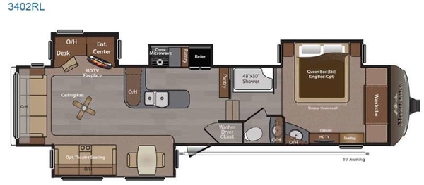 This rear living Montana fifth wheel model 3402RL features quadruple slides, and all the space you need to enjoy spending time away from home!
