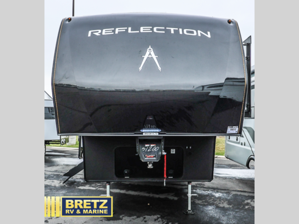 With any Reflection fifth wheel by Grand Design, you will have a solar panel for off-grid camping and a 60 amp charge controller and inverter prep, a Universal All-In-One docking station, unobstructed pass-through storage, and Goodyear Endurance tires. Each is constructed of gel coat exterior sidewalls, residential 5" truss rafters, walk-on roof decking, a fiberglass and radiant foil roof and front cap insulation plus laminated aluminum framed side walls, roof and end walls in slide rooms. Head inside to enjoy residential hardwood cabinet doors, premium Congoleum flooring, a spacious shower with a glass door, and many more comforts!