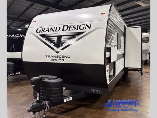 The customer-focused, quality-built Transcend Xplor travel trailers by Grand Design are your ticket to fun and adventure. You will appreciate the power tongue jack when it comes time to set up, as well as the all-in-one utility center and the detachable power cord with an LED light. These models include many outlets throughout, USB ports to charge your gadgets, and a JBL exterior speaker to listen to your favorite tunes. The interior of the Transcend Xplor will have you feeling right at home with upgraded residential furniture, residential countertops, residential cabinet doors, and the list goes on!