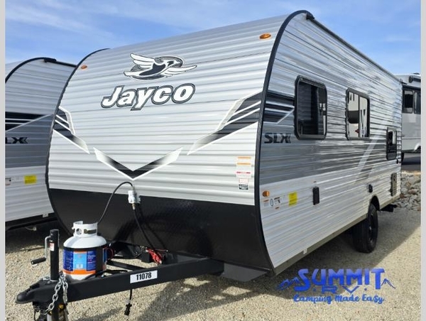 The Jayco Jay Flight SLX travel trailer is quite easy to own because it is lightweight for an easier towing experience. Built on a fully integrated A-frame with galvanized-steel, impact-resistant wheel wells, the Jay Flight SLX has quality at its very foundation. That quality continues on to the electric self-adjusting brakes, easy-lube hubs, Magnum Truss roof system, and LP quick connect. Some of what the mandatory Customer Value Package includes is backup camera prep, Keyed-Alike entry and baggage doors, and an on-demand tankless water heater.