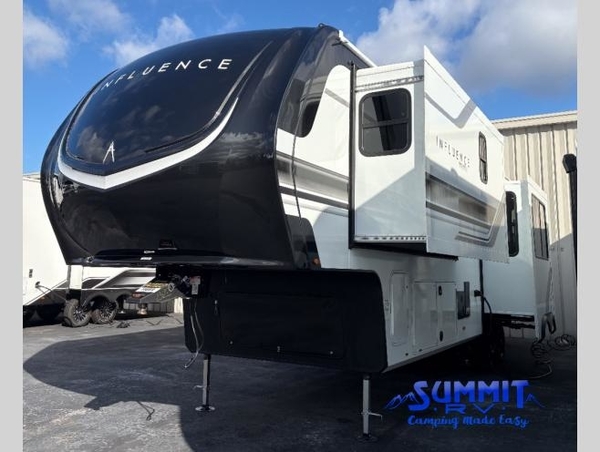 Any Grand Design Influence fifth wheel features five-sided aluminum cage construction with a walk-on roof and a fully enclosed underbelly with heated tanks and storage for all weather camping. For peace of mind, the MORryde CRE3000 Suspension system will provide safe and smooth towing, and the 101" widebody construction offers all the room you need and that is before multiple slides are fully engaged. You will appreciate the Keyed-Alike locks, slam-latch baggage doors with magnetic door catches, exterior security light, and SolidStep entry steps. On the inside, Congoleum flooring, premium roller shades for privacy, a hallway handrail for safety, and nightstands with USB ports to keep all of your electronics fully charged. You will also love the On Demand tankless water heater when showering, plus the added heat and ambiance from an electric fireplace, and so much more!