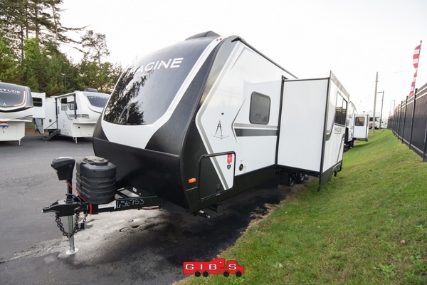 Just imagine leaving the world behind and secluding yourself away with your favorite people in your Grand Design Imagine travel trailer! The Imagine has been designed to enjoy camping and includes a high-capacity furnace, a heated and enclosed underbelly with suspended tanks, a designated heat duct to the subfloor, and a high-density roof insulation with attic vent. You'll have a large panoramic window to let natural lighting in and an adjustable Power Awning with LED Lights for those night gatherings. The exclusive drop-frame pass-through storage compartment is going to allow you to bring along lots of equipment, and the universal docking station is an all-in-one location for utilities and hook-ups. You'll also have oversized tank capacities so that you can fill and empty your tanks less often.