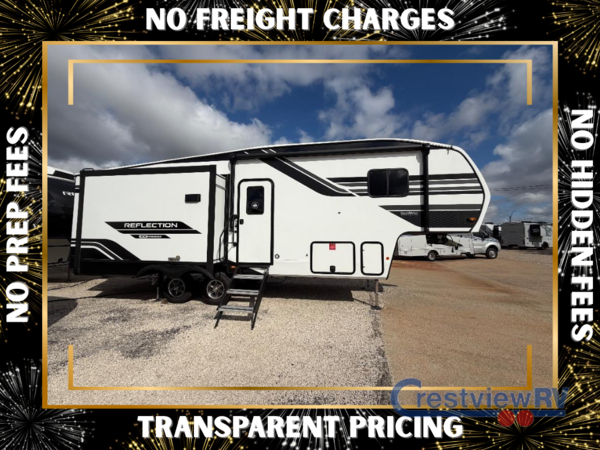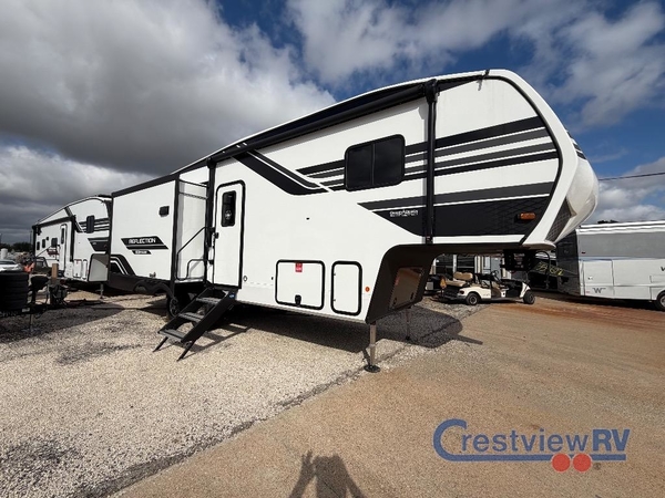 Each Reflection 100 Series fifth wheel by Grand Design is affordable and packed with luxury for unforgettable camping memories! The MorRyde CRE3000 suspension system and Goodyear Endurance tires will provide smooth towing from home to campground. And the solar package with a 180W solar panel, 60 Amp charge controller and 12V refrigerator will allow you to camp for longer periods of time and in more locations! A heated and enclosed underbelly with circulating heat is included in the Arctic 4-Seasons Protection Package, along with a double insulated roof and front cap, and thermofoil insulation under the holding tanks so you can camp all year long if you choose. You will appreciate having an on-demand water heater for hot showers after exploring, and the universal all-in-one docking station will let you monitor your RVs tanks levels and functions with ease. These models also include many luxurious interior features, such as premium Congoleum flooring, pleated shades, residential cabinetry, and matte black fixtures and hardware. Don't let the Reflection 100 Series fifth wheels pass you by!
