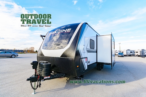 Just imagine leaving the world behind and secluding yourself away with your favorite people in your Grand Design Imagine travel trailer! The Imagine has been designed to enjoy camping and includes a high-capacity furnace, a heated and enclosed underbelly with suspended tanks, a designated heat duct to the subfloor, and a high-density roof insulation with attic vent. You'll have a large panoramic window to let natural lighting in and an adjustable Power Awning with LED Lights for those night gatherings. The exclusive drop-frame pass-through storage compartment is going to allow you to bring along lots of equipment, and the universal docking station is an all-in-one location for utilities and hook-ups. You'll also have oversized tank capacities so that you can fill and empty your tanks less often.