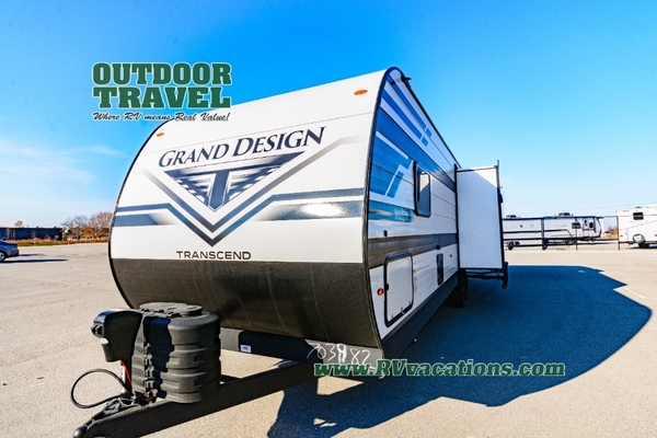 With any Transcend travel trailer by Grand Design, you will enjoy upscale appointments and convenient amenities to make each camping experience one to remember! The Quad Seal technology, residential insulated walls, plus heated and enclosed underbelly with suspended tanks make these units solid and durable. There is a black automotive glass door outside, along with a Safe-T-Rail assist on the main entry door, backup camera prep, and a universal docking station. JBL interior and exterior speakers plus a JBL head unit will let you listen to your favorite tunes as you visit under the power awning with LED strip lights. Inside, you'll enjoy multiple outlets to keep your gadgets charged, thermoformed and seamless countertops, and a 6' 6" interior height so you won't feel closed in. The Solar Prep Package will allow you to enjoy off-grid capabilities with a 200W solar panel, which is wired for up to 600W, a 30 AMP Bluetooth solar controller, a 2000W inverter prep, and more!