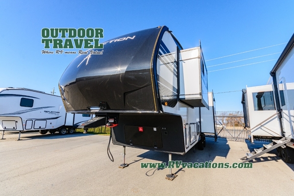 With any Reflection fifth wheel by Grand Design, you will have a solar panel for off-grid camping and a 60 amp charge controller and inverter prep, a Universal All-In-One docking station, unobstructed pass-through storage, and Goodyear Endurance tires. Each is constructed of gel coat exterior sidewalls, residential 5" truss rafters, walk-on roof decking, a fiberglass and radiant foil roof and front cap insulation plus laminated aluminum framed side walls, roof and end walls in slide rooms. Head inside to enjoy residential hardwood cabinet doors, premium Congoleum flooring, a spacious shower with a glass door, and many more comforts!