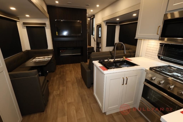 Any Grand Design Influence fifth wheel features five-sided aluminum cage construction with a walk-on roof and a fully enclosed underbelly with heated tanks and storage for all weather camping. For peace of mind, the MORryde CRE3000 Suspension system will provide safe and smooth towing, and the 101" widebody construction offers all the room you need and that is before multiple slides are fully engaged. You will appreciate the Keyed-Alike locks, slam-latch baggage doors with magnetic door catches, exterior security light, and SolidStep entry steps. On the inside, Congoleum flooring, premium roller shades for privacy, a hallway handrail for safety, and nightstands with USB ports to keep all of your electronics fully charged. You will also love the on demand tankless water heater when showering, plus the added heat and ambiance from an electric fireplace, and so much more!