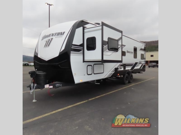Are you looking for adventure and fun? The Momentum G-Class toy hauler by Grand Design will help you find it! You can explore during any season you choose with the Insulation Package that includes a heated and enclosed underbelly with suspended tanks, a high-capacity furnace, a moisture barrier floor enclosure, and cabinet-mounted heat ducts. Each model includes a high capacity water pump, a dovetail rear end, and 2,500-LB tie-downs anchored into the chassis. Throughout the Momentum G-Class interior, you'll enjoy many comfortable features like large panoramic windows, a shower skylight, USB chargers in the bedroom, and residential cabinetry.