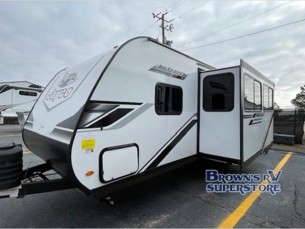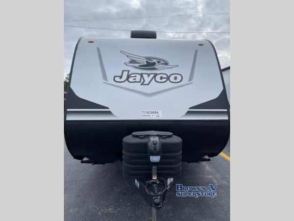 Camp light and camp convenient in a Jay Feather SL by Jayco! This lightweight travel trailer is constructed with a Magnum Truss roof system, a fully integrated A-frame, and exterior Azdel composite panels for added durability. There are also nitrogen-filled radial tires outside, along with large downspouts, MORryde Step Above entry steps, a power awning with LED lights, and a power tongue jack to name a few conveniences. Head inside to enjoy the vinyl flooring throughout, solid hardwood cabinet doors, a shower surround, and residential-style kitchen countertops to make your space feel a little more like home!