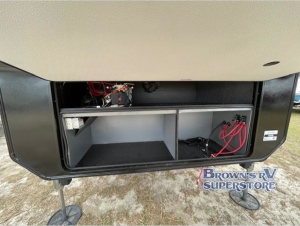 Triples slides, a desk/coffee bar, fireplace, and a huge master bath in front all indicate the kind of vacation you will experience in this Pinnacle Fifth Wheel! As you enter, a convenient half bath is located straight ahead. Slightly to your left, a nice seating area for gathering with family or friends to relax and watch TV, enjoy the fireplace while reading a book or watching a movie, and the dining table with chairs. The dinette slide also houses a 21 cu. ft. residential refrigerator and pantry. The rear kitchen features a u-shaped counter, all the appliances you need to cook like at home, even a pull-out butcher block space for chopping up your veggies. Back through and up the steps to your right in front, the master bedroom will make you feel like royalty with its king bed, plus luxurious full rear bath. A huge vanity with dual bath sinks will allow you both to get ready at the same time, plus there is a walk-in shower with a seat for added convenience. Speaking of walk-in, you will also love the spacious walk-in closet that includes washer/dryer prep.