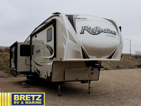 The Reflection by Grand Design offers luxury along with providing easy towing with the aerodynamic front cap with Max Turn radius to your favorite destinations. The Universal All-In-One docking station, LP Quick Connect, and One-Touch electric awning with LED light make setting up and packing up easy for those weekenders or full-timers that like to move around. Inside you will find the bedroom is complete with a pillowtop queen mattress, king size wardrobe, oversized underbed storage, and much more! The Arctic 4-Seasons Protection package allows you to camp anywhere and anytime of the year. Come choose your favorite model today!