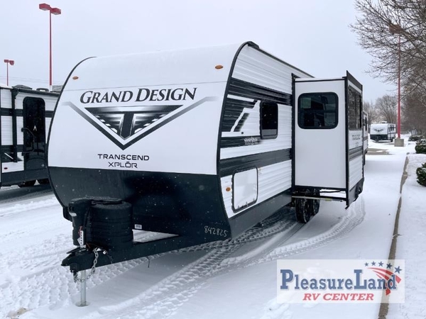 The customer-focused, quality-built Transcend Xplor travel trailers by Grand Design are your ticket to fun and adventure. You will appreciate the power tongue jack when it comes time to set up, as well as the all-in-one utility center and the detachable power cord with an LED light. These models include many outlets throughout, USB ports to charge your gadgets, and a JBL exterior speaker to listen to your favorite tunes. The interior of the Transcend Xplor will have you feeling right at home with upgraded residential furniture, residential countertops, residential cabinet doors, and the list goes on!