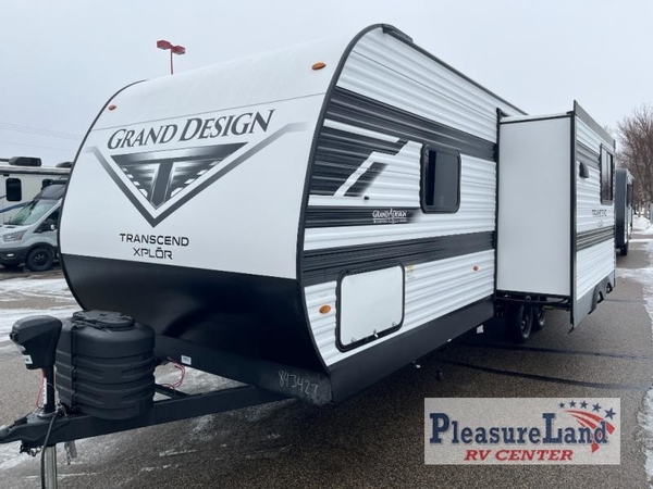 The customer-focused, quality-built Transcend Xplor travel trailers by Grand Design are your ticket to fun and adventure. You will appreciate the power tongue jack when it comes time to set up, as well as the all-in-one utility center and the detachable power cord with an LED light. These models include many outlets throughout, USB ports to charge your gadgets, and a JBL exterior speaker to listen to your favorite tunes. The interior of the Transcend Xplor will have you feeling right at home with upgraded residential furniture, residential countertops, residential cabinet doors, and the list goes on!